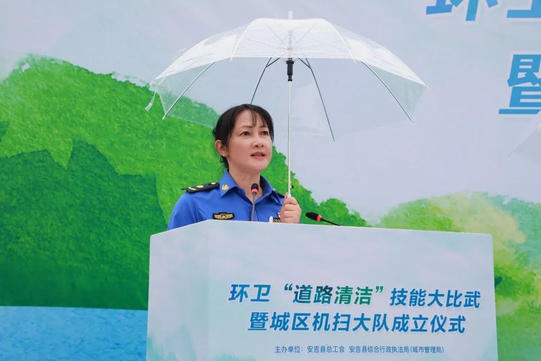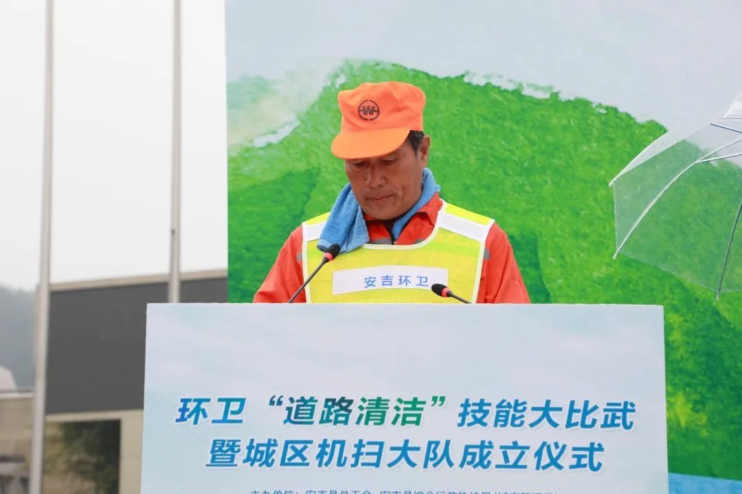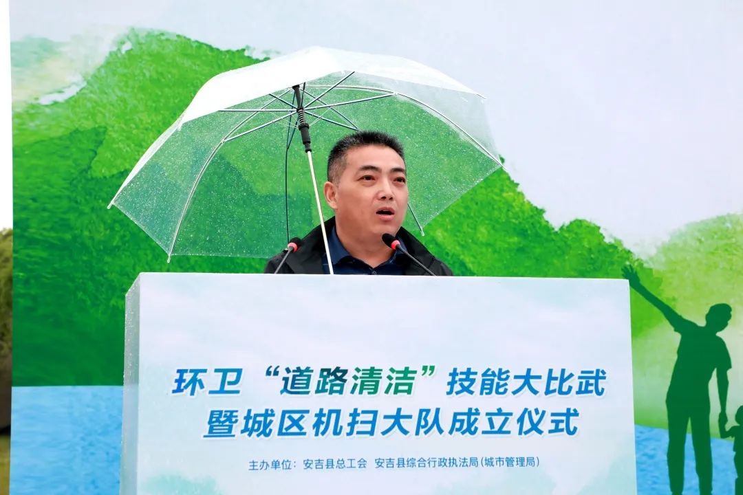 2022年5月20日上午,安吉縣環衛“道路清潔”技能大比武暨城區機掃大隊成立儀式在龍山體育中心舉行??h人大常委會副主任、縣總工會主席王一明,縣總工會黨組書記、常務副主席朱車生,縣綜合執法局黨委書記、局長章熙翔,縣綜合執法局黨委副書記、副局長張惠紅,縣總工會黨組成員、副主席閻德順,縣綜合執法局黨委委員李斌出席,各鄉鎮(街道)分管領導,各產業系統工會負責人,遞鋪環衛所以及各物業公司機掃分隊代表參加活動。